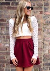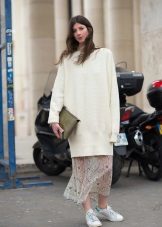Want to wear it with a skirt? Then choose a narrow pencil skirt, and underline the waist with a belt. The most daring fashionistas can try wearing it with a fluffy airy skirt.
