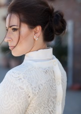 If the collar is voluminous or the sweater has additional decor, it is better to abandon the decoration on the neck. Prefer long earrings, especially if you prefer to pin hair. Otherwise, there will be enough earrings-earrings.