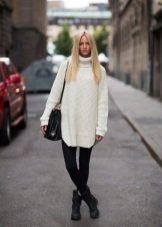 A long sweater can play the role of a tunic or even a dress, so you can wear it in several ways. The most common combinations are skinny jeans or leggings, this option is suitable for a casual look.