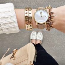 To a sweater with shortened sleeves, it is worth choosing beautiful bracelets, in a business look you can limit yourself to concise watches on your wrist.