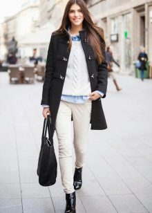 Business attire can be complemented with pumps, or ankle boots with thick heels. In winter, these may be high-top boots, but by no means over-boots.