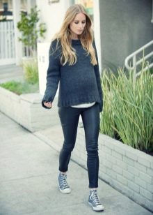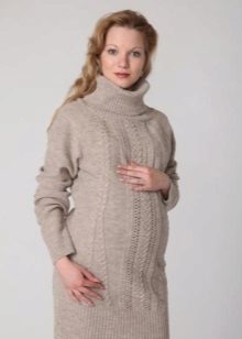 There are several styles that are preferable for pregnant girls, but the most important thing is a free cut. You can choose a model-oversize, which is useful to you after the birth of the baby. It can also be a sweater assembled under the chest or a semi-fitted sweater with a belt.