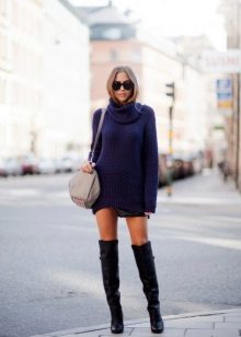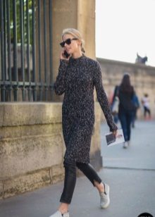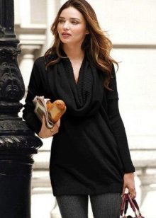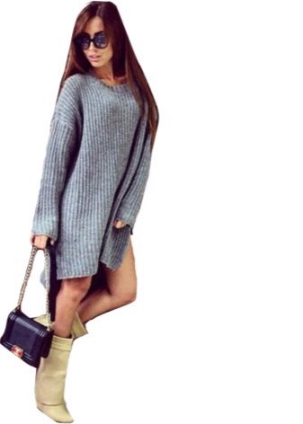 A long sweater, depending on the length, is called a tunic sweater or sweater dress. The latter can be worn simply with tight tights or thin leggings.