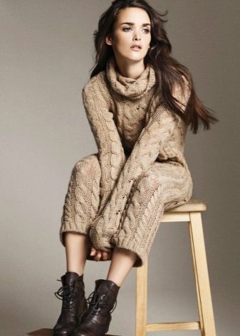 Choose products from soft, body-friendly yarn. It is worth giving preference to a warm long sweater of a fitted silhouette that will elegantly sit on the figure. Slender girls fit voluminous textured knitting, which will emphasize all their advantages.
