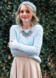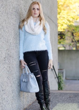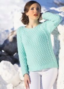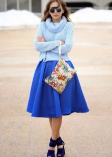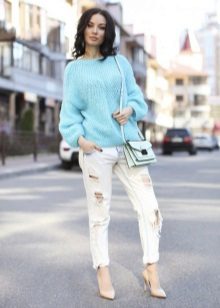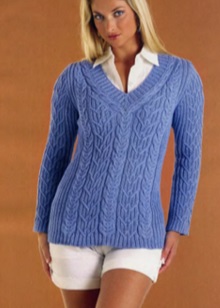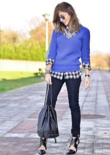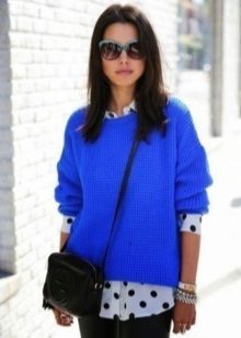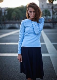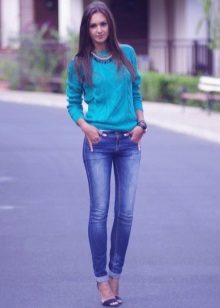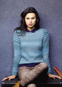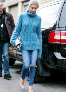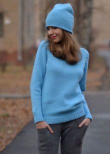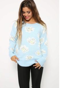 Despite the fact that blue sweaters do not belong to basic wardrobe items, they are perfectly combined with any bottom, be it jeans or a skirt, the main thing is to choose a harmonious shade correctly.