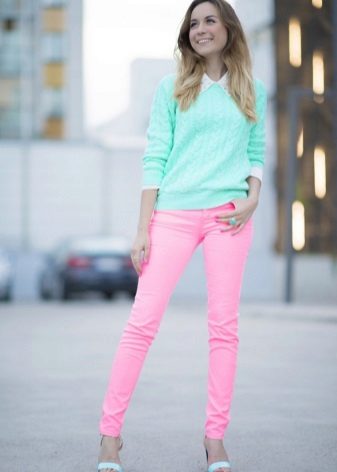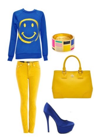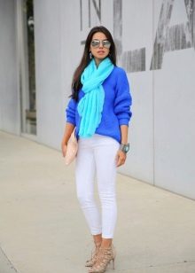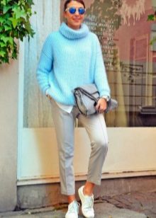 When choosing a blue sweater, you should pay attention to the colors of the other elements of the wardrobe. Blue goes well with both neutral tones and a bright palette.