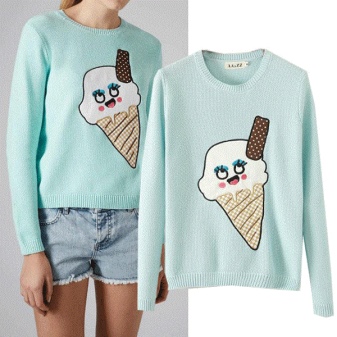 Animal images are another fashion trend in sweater manufacturing. Koalas, pandas, cats and dogs - fashion designers know how to attract the attention of girls.