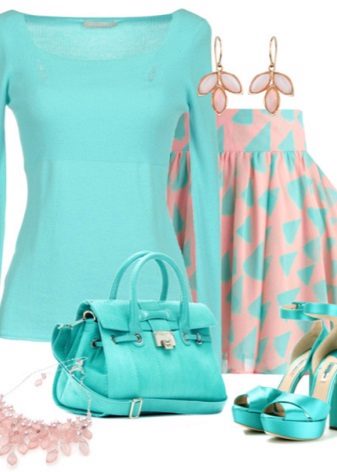 Blue and pink are a relevant, delicate and sought-after tandem. Of course, for the office is not permissible, but for a romantic date is quite appropriate.