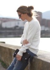 This season, at the peak of popularity, there is a white model with voluminous sleeves. This sweater is perfect for the embodiment of office bow. It can be worn with a pencil skirt or straight-cut trousers. The sweater is characterized by a strict cut, and voluminous sleeves give the model originality and elegance.