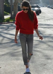 Classic solutions are white and black. Such a sweater can be safely combined with various elements of a women's wardrobe. Bright sweaters look better with sweaters of gentle tones, but the top of a saturated shade should be worn with a bottom of pastel tones. The bright red model will fit perfectly in the street style.