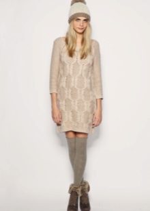 It is appropriate to combine a long sweater dress with shoes, and short options with long boots, otherwise the image risks becoming vulgar.