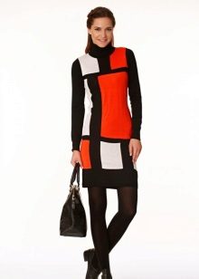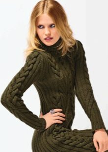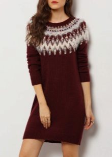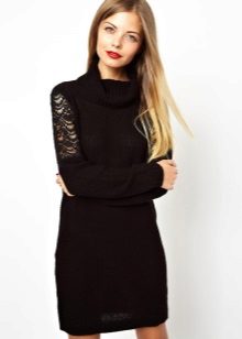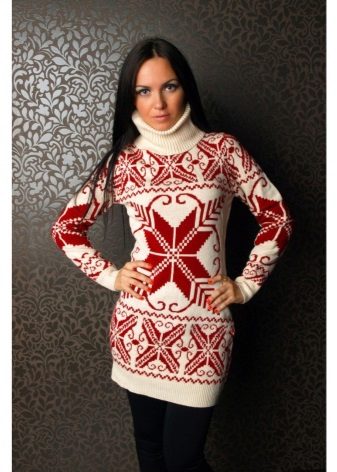The traditional model of such a sweater has a fitted cut, long sleeves and a high collar or collar-collar. You can also find dresses of a straight cut with a V-shaped or round neckline, as well as a boat-shaped neckline. Some models are decorated with a stand-up collar.