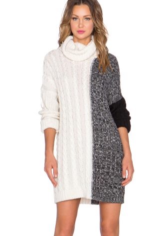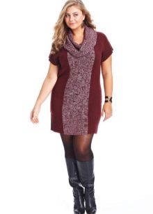 This is an elongated sweater or short knitted dress with a high collar.