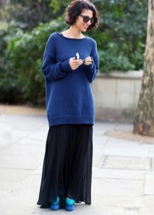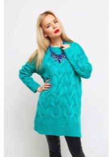 Lovers of dresses for the floor can recommend elongated models of sweaters. They usually have a flared style and are often complemented by a belt. Models of thick, textured knitting with embossed patterns made of yarn of deep, saturated colors, for example, blue, red, dark green, etc. look beautiful.