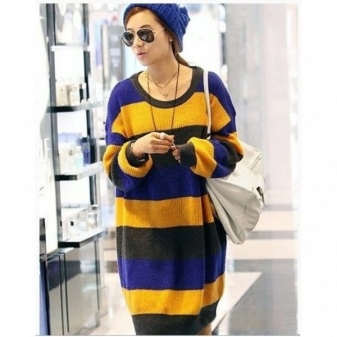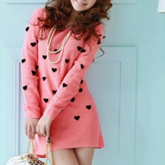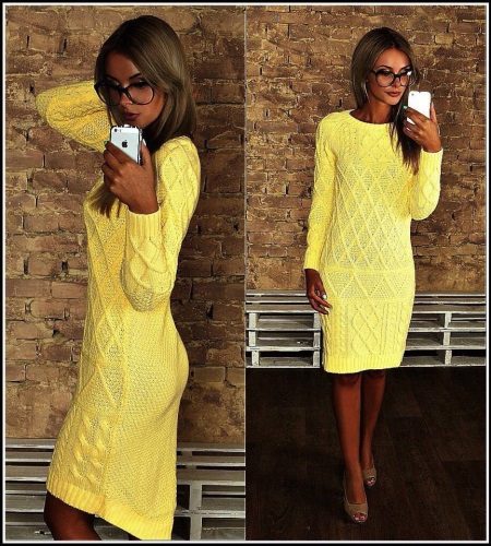 The length of the sweater itself can also vary. The most common option is with a knee length or slightly higher. The dress can be straight or slightly fitted to the cuff at the bottom.