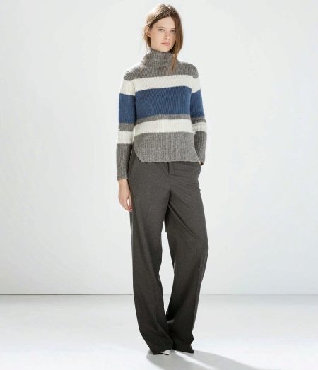 Striped sweaters will diversify any wardrobe, the main thing is to remember one important rule: all other clothes, shoes and accessories must be used in plain color. Moreover, their colors should be the more neutral, the brighter the top.