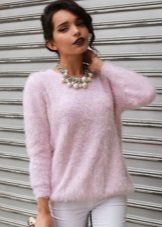 At the same time, the sweater should perfectly retain heat and be aesthetically attractive. Natural materials, including angora and mohair, perfectly cope with all these tasks. Warm, delicate wool has high heat-saving properties, sufficient strength and wear resistance. This sweater perfectly retains heat and allows the skin to breathe.