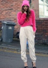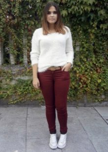 It can be combined with a shirt, turtleneck or polo shirt. Sneakers, sneakers, moccasins are quite suitable as shoes.