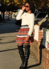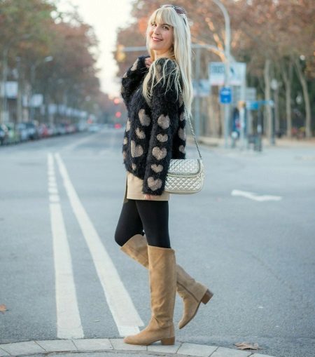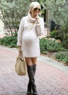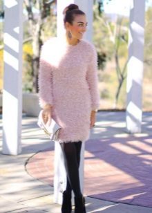 One of the most popular models this season is a sweater dress. It can be worn with tight tights and high boots or high heel ankle boots. If desired, a pair of bright accessories can be added to the image.