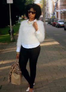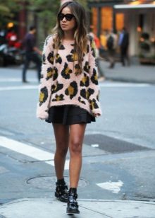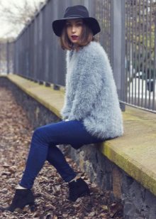A fluffy sweater in itself is a very beautiful element of clothing, so it does not need excessive decor. However, you can often find models with leopard, floral, fantasy and ethnic ornaments.