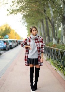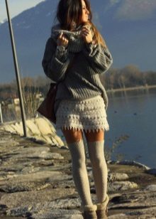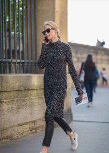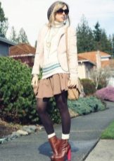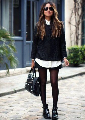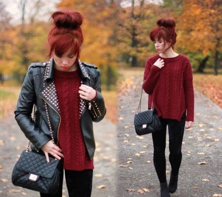 If you are one of those who are not afraid of experiments, you can try more contrasting combinations, adding a thick sweater with a feminine skirt or dress. To balance the composition, you can use leggings and boots with thick soles.
