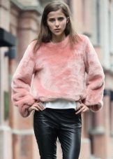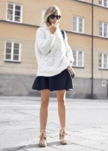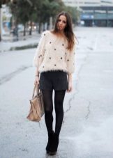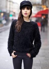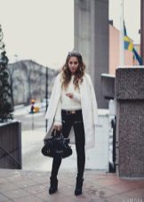 The combination of a lush, fluffy, soft snow-white top with a laconic black hem in the form of a miniskirt or black leather trousers will add chic and showiness to an independent lady.