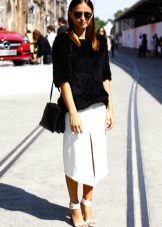 You can not ignore the theme of elegant black and white classics. So a black jumper will make a suitable batch in a business set with a pencil skirt, A-line skirt or pleated skirt. As for the white sweater, there is already an application for luxury.