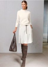 If you suddenly want to take a break from the contrasts, you can choose a beige sweater. In combination with a skirt or trousers of a classic cut of brown and blue colors, it will look restrained and noble.