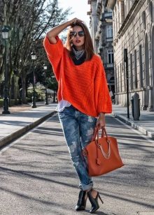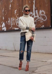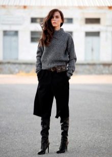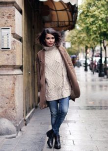 A bulky sweater is best worn with tight trousers and jeans, combined with high boots or low boots