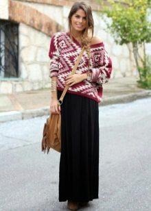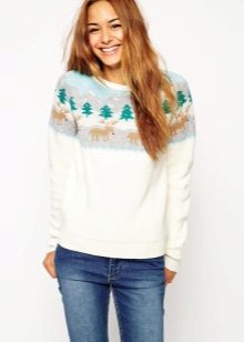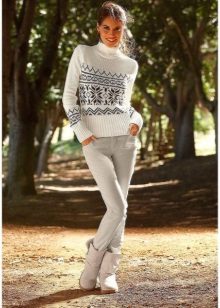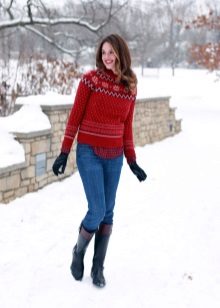. If we talk about sweaters with geometric patterns, Scandinavian patterns, favorite deer and Christmas trees, then an ideal pair for them would be any type of jeans: from skinny to “boyfriend jeans”, trousers made of thick fabric and maxi skirts.