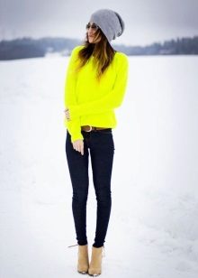 But if you wanted to wear a sweater of a very bright color, then try not to look like a “traffic light”.