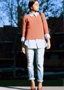 The sweater suggests that there is another layer of clothing underneath, so one of the most common combinations with a “warm top” is a shirt. In this case, the shirt performs not only a utilitarian function, but also complements the ensemble. To successfully combine a sweater with a shirt, you should adhere to some basic rules.