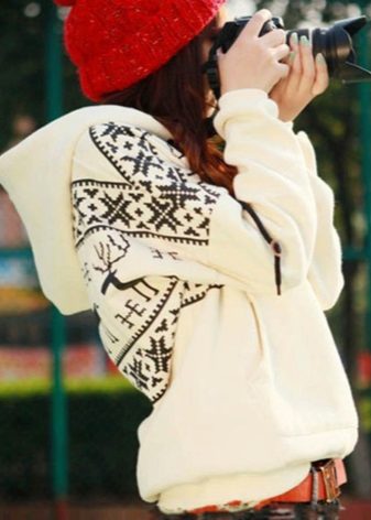 In the cool season, sweaters with a hood will look good with cozy, warm accessories - knitted hats, scarves, gloves and headphones.