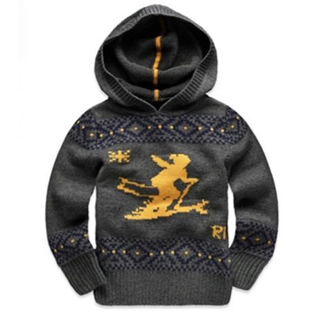 - Children's dark gray sweater with a hood from Deerz.The sweater decorated with bright ornament is made of mixed yarn. The product contains 50% Australian merino wool.
