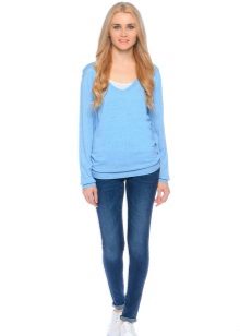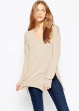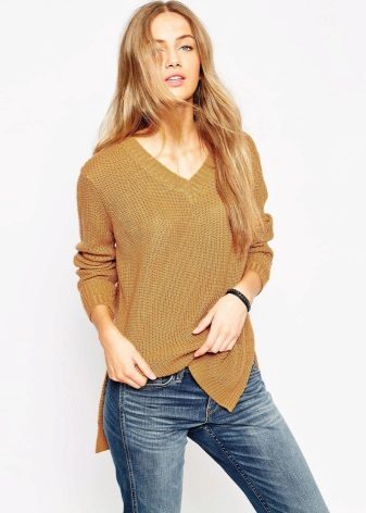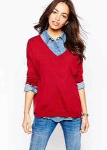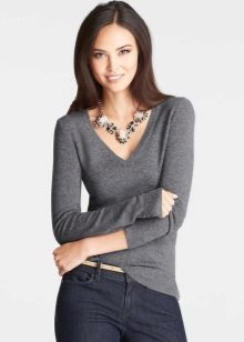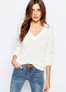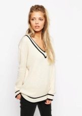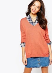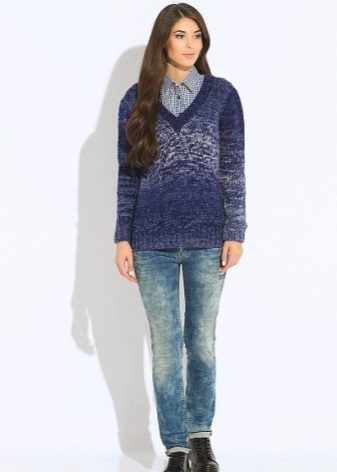 Sweaters with a V-neck are good in that they can be worn both as an independent element of the wardrobe, and paired with a shirt or top. In addition, under such a sweater, you can wear a blouse, turtleneck, t-shirt or a simple shirt. This will not only make the image more interesting, but also provide additional protection from the cold.