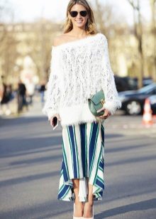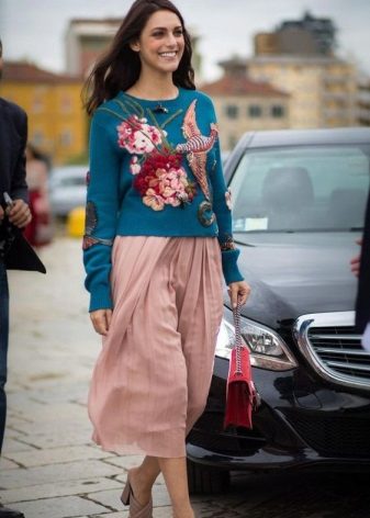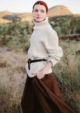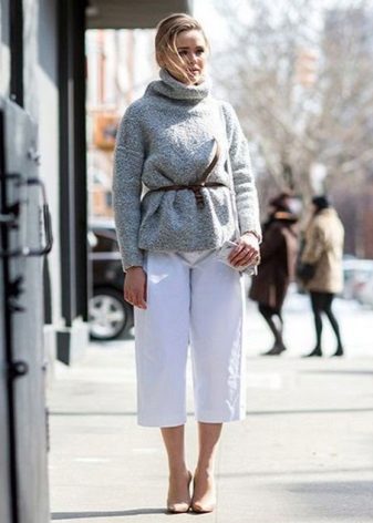 It is worth paying attention to woolen sweaters with an asymmetric cut, with a voluminous collar or with an interesting finish (lace and various applications are in fashion).