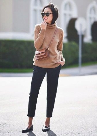 Business women wear a sweater with trousers, and high-heeled shoes will give an image of elegance and sophistication.