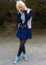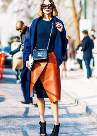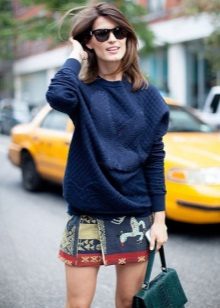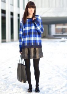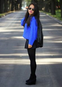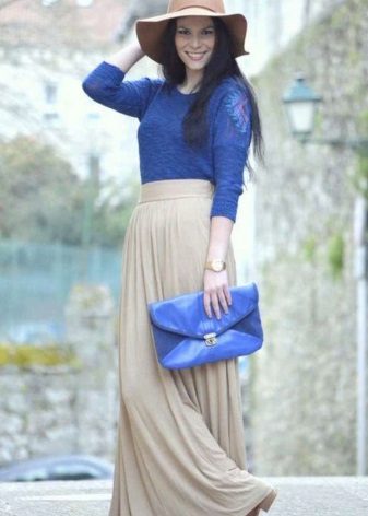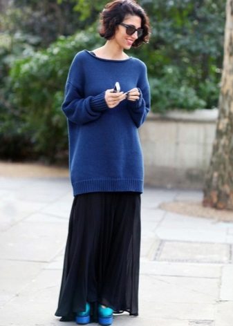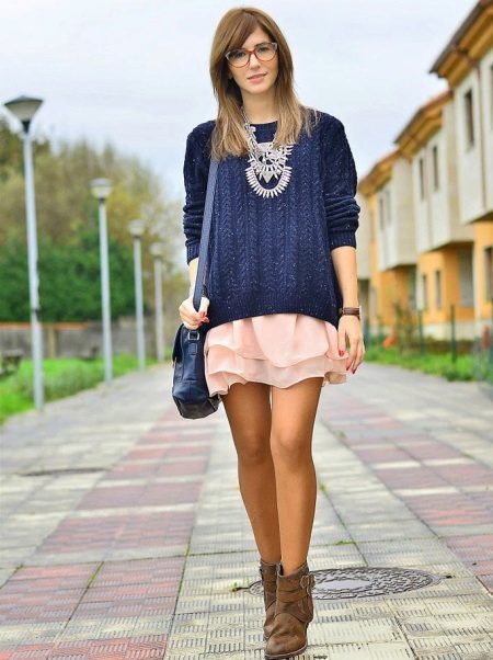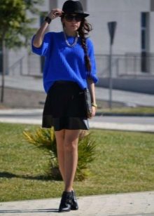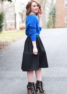 A blue sweater creates a great tandem with skirts. It is worth looking at the models of a classic or flared cut. The optimal length is midi.