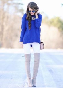 Since the blue sweater belongs to the basic things, it can be combined with different elements of the women's wardrobe.