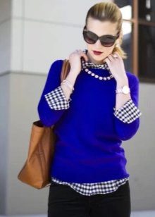 Full girls should pay attention to blue sweaters of thin knitting with a V-neck. Such a model will help visually lengthen the silhouette. The representatives of a thin physique are ideal sweaters with a beautiful collar-collar.