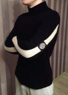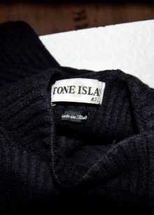 - Black sweater with an original collar. The model is made of wool with the addition of synthetics, so it has a slight stretch effect. The highlight of this sweater is a voluminous collar of the “schalke” type.