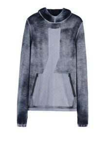 - A gray sporty sweater with a hood and a large kangaroo pocket. The model is made of 100% wool and decorated with a stylish pattern, applied using an airbrush.