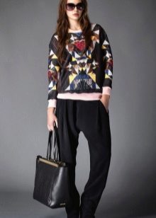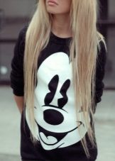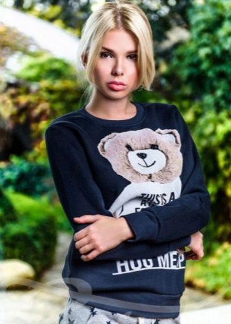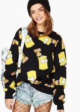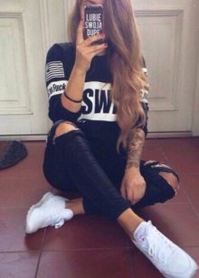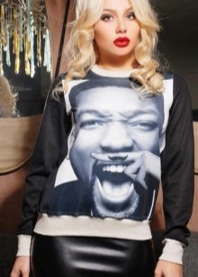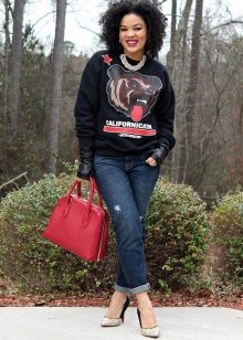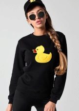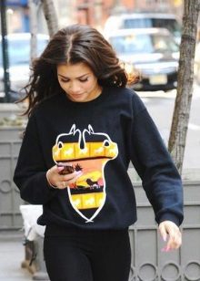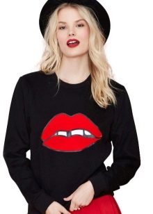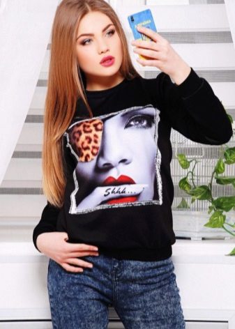A black print sweatshirt should be purchased by those girls who want to draw attention to the top of the bow. Today, the variety of drawings on a black sweatshirt is simply mesmerizing. Each fashionista will be able to choose an original top on her favorite subject.