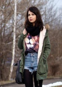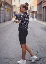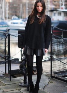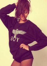 A black sweatshirt can be combined with different shorts (leather, denim, lace, etc.).