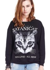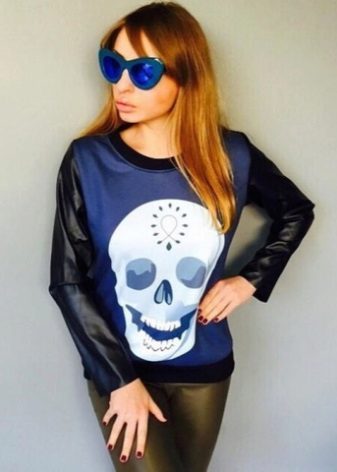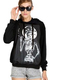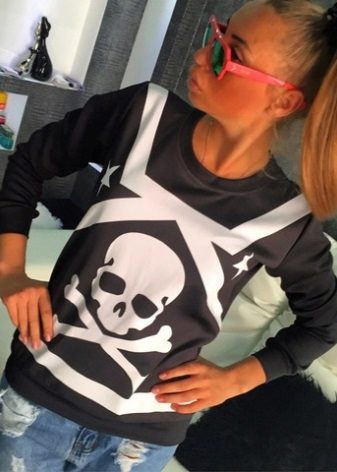 Black sweatshirts deserve special attention. with skulls. For the first time such a print will appear in the XVIII century, when the Europeans used it to decorate uniforms. This meant that they would not leave the battlefield. Today, every girl in this outfit will declare itself as a winner. Designers offer a creative vision of this print, so this sweatshirt looks original and impressive.
