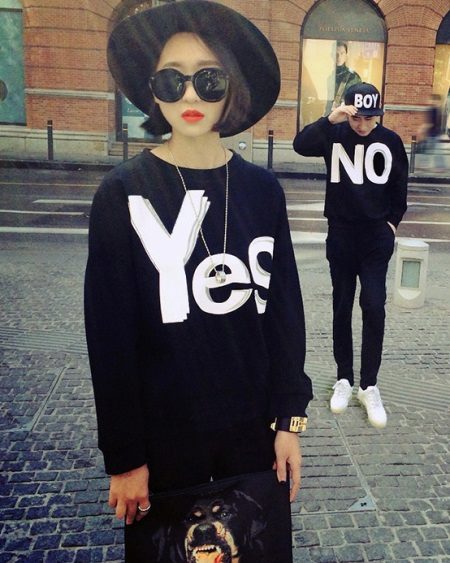 A black sweatshirt can be combined with almost all things. It allows you to create unforgettable, fashionable bows in many styles.