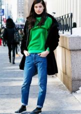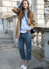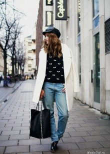 The most suitable shoes are sneakers and sneakers, boots, but it is not rare to find successful images with high-heeled shoes, boots and boats. Jackets and parks, cardigans, and leather jackets are suitable from outerwear. The most daring accessories are easily selected - hats and scarves on the floor or, conversely, business bags and belts.