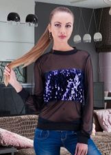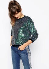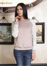 You can easily find a non-standard choice for sweatshirts: fur, lace, guipure, velvet, mesh. They can be used only as inserts.