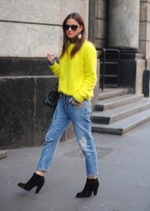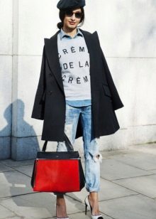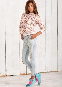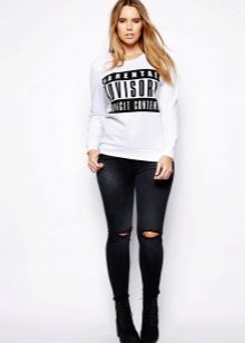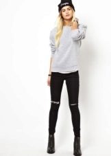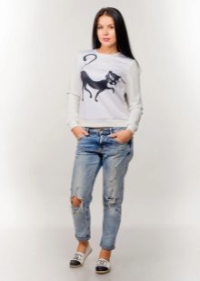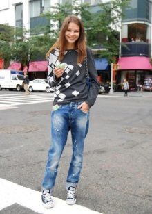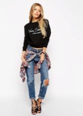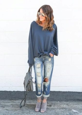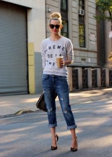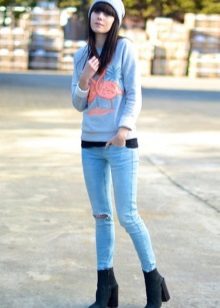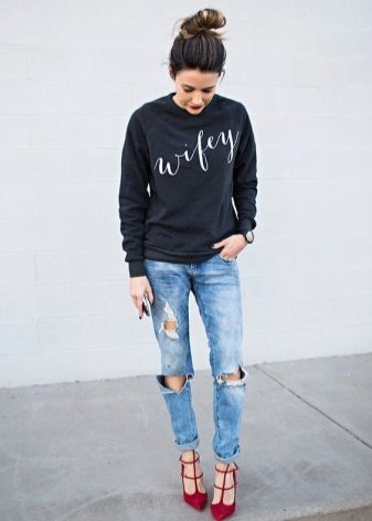 Everyday business: sweatshirt, torn jeans and complementary shoes, be it high heel shoes or boots.