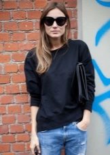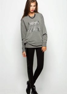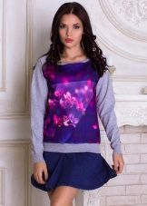 Sweatshirt is perfect for jeans, trousers, leggings, breeches, shorts and skirts, and all these products can be of any length and style. Short sweatshirts are great to combine with loose clothing, and full-size and long with narrowed. You can wear a dress or shirt under it.